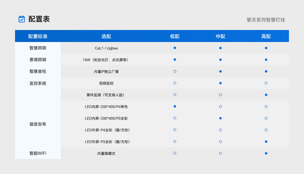 | 智慧燈柱杆 | 标準高度4.5米(可定制),亮銀色。 |